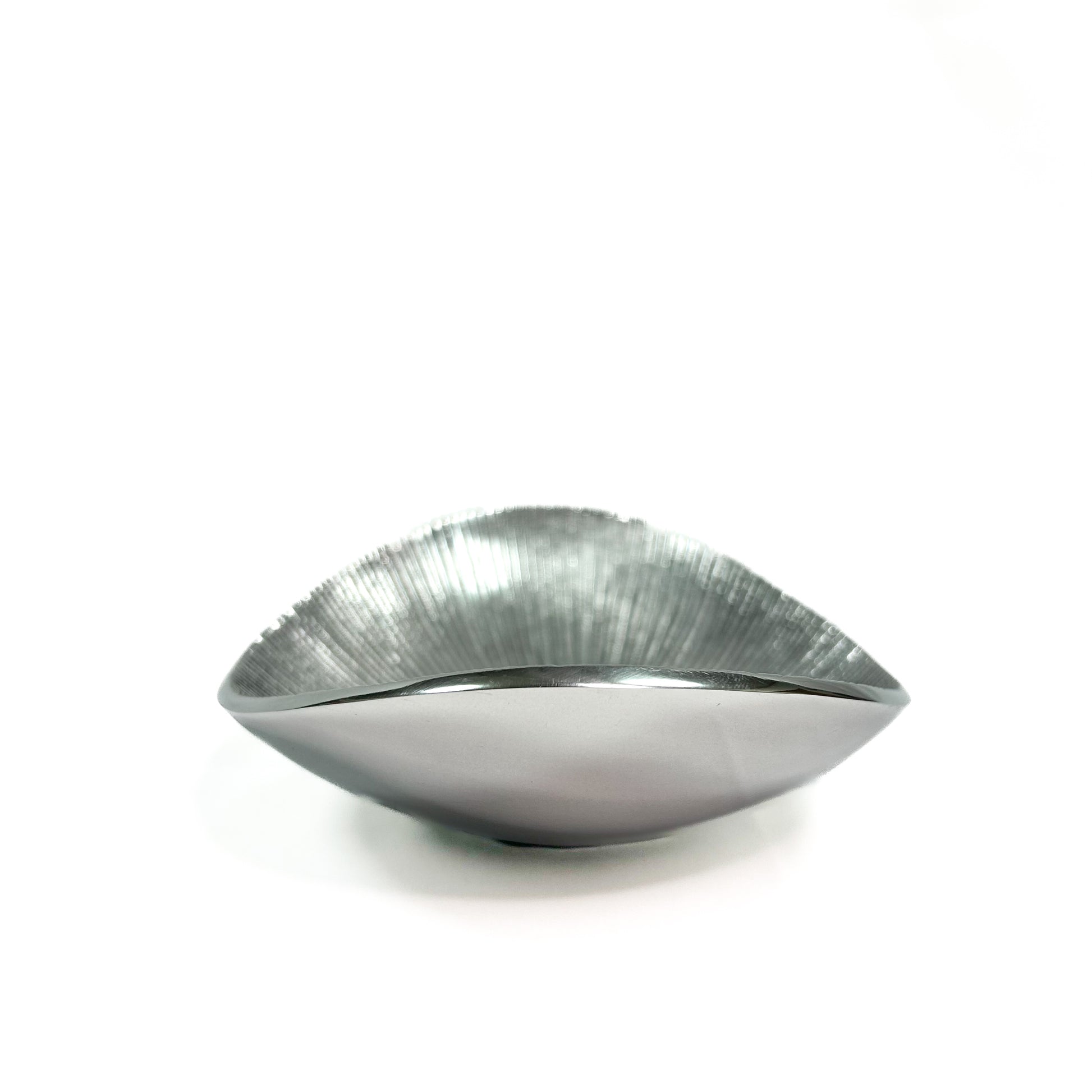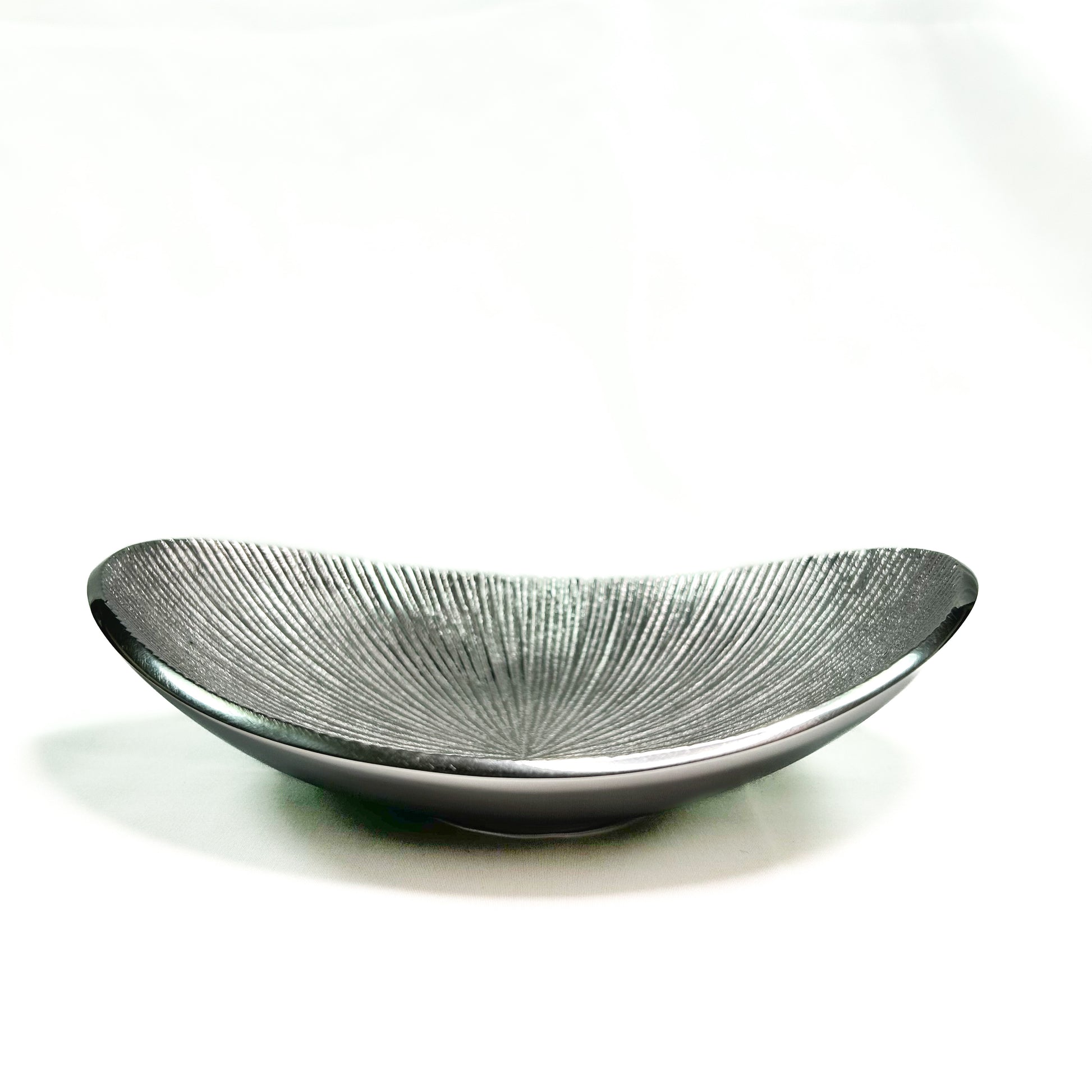放射状に削りの入ったデザインのアルミトレイ。インドにてトラックや車の廃材から出るアルミを粉砕することでリサイクルして作られています。